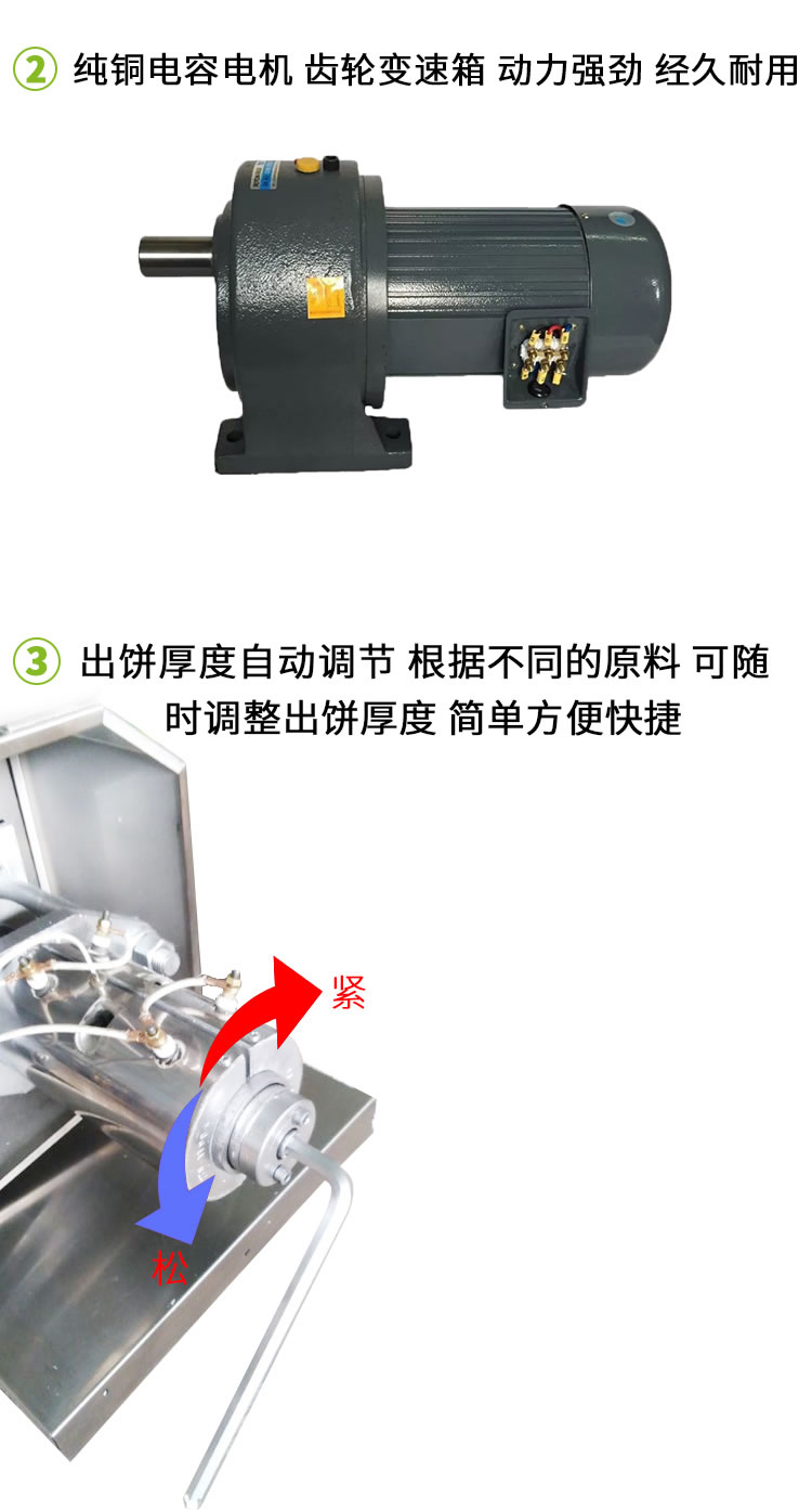 三:新结构。拆卸清洁简单方便。不需要大拆卸清理。直接可拆卸。出饼厚度自动调节。避免屯料堵料。