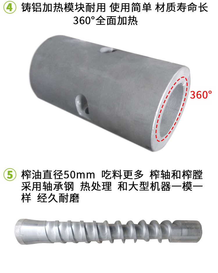 四:榨油机的动力重量结构强度产量是成正比的。不夸大宣传高产量。产量均是保证出油率的前提下的真实产量!